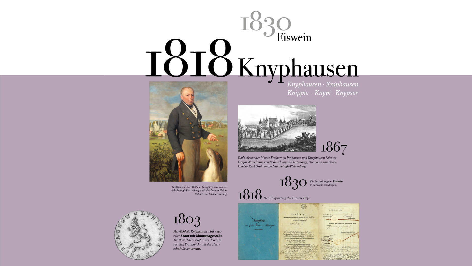 Familie: Die ostfriesische Familie Baron Knyphausen übernimmt das Weingut im Jahre 1818 und betreibt das Unternehmen nunmehr in 8. Generation